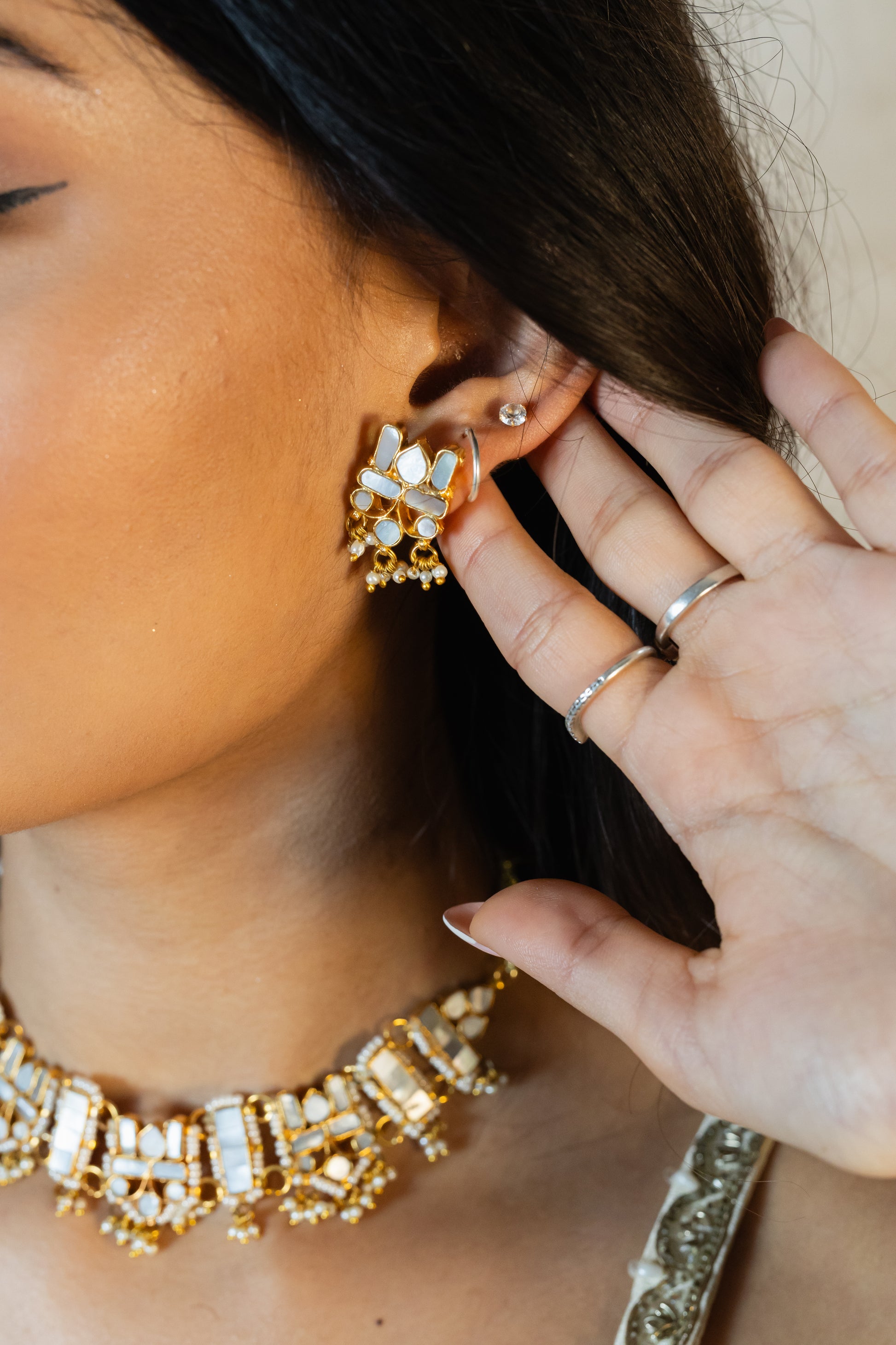 This beautiful mother of pearl set consists of a necklace and a pair of earrings.