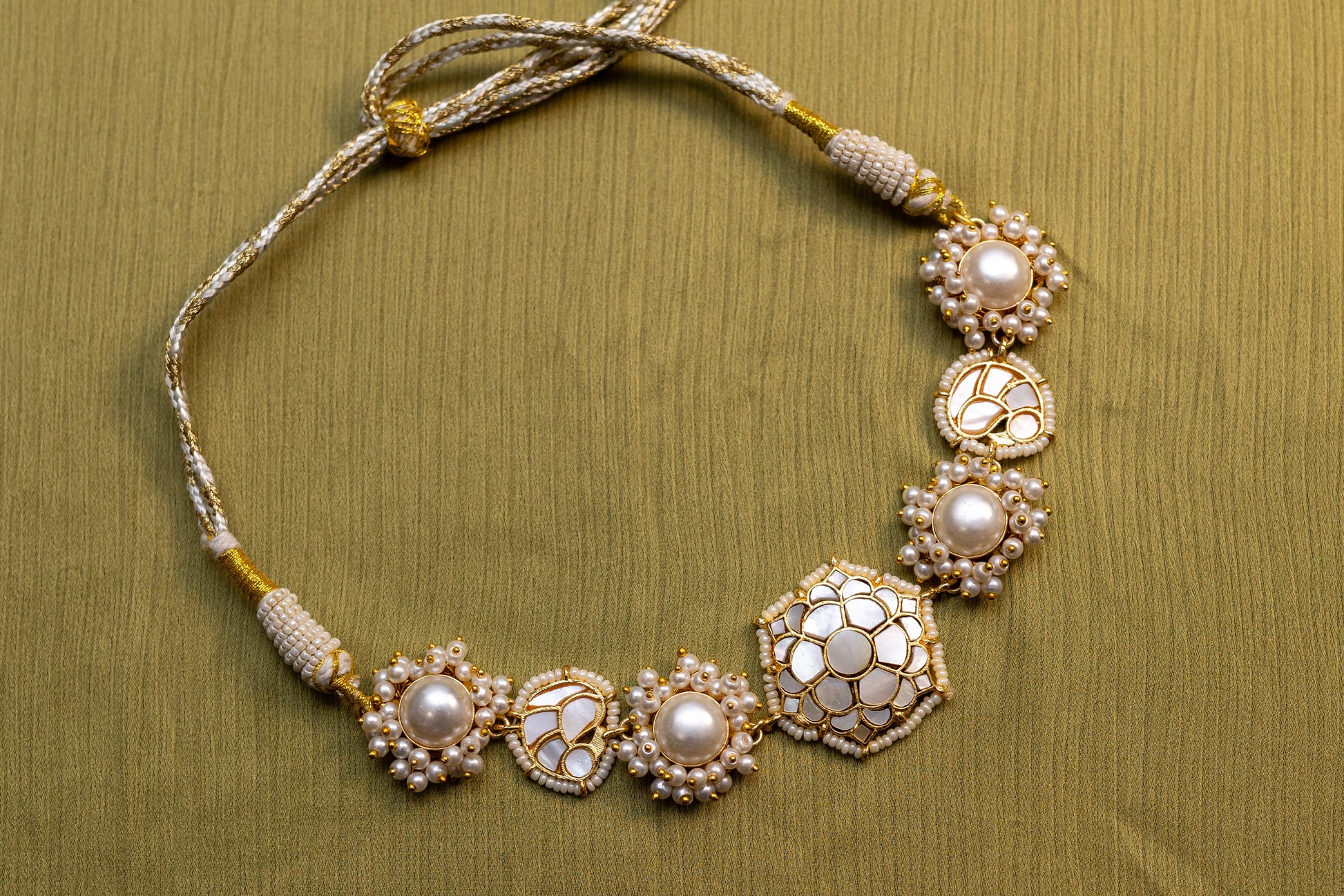 The handcrafted necklace is true to its unique shell-like colour. Secured with a drawstring closure.